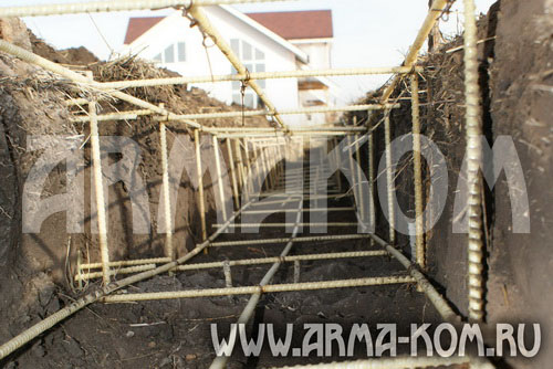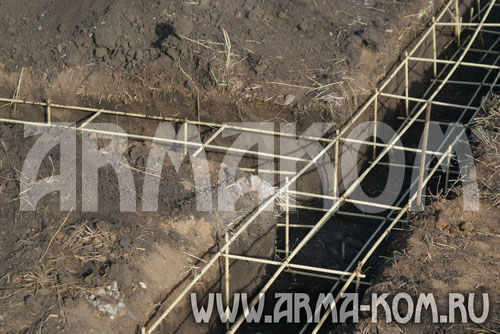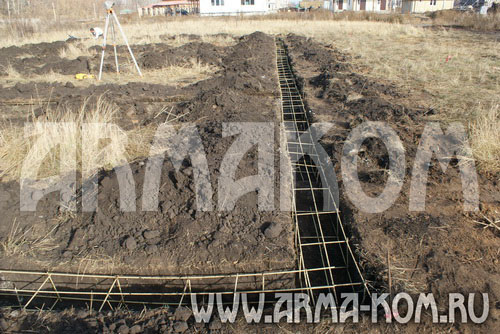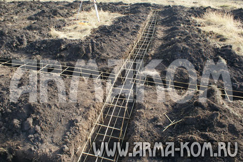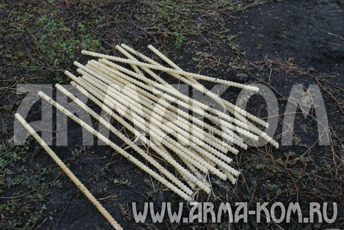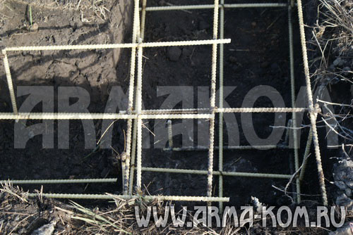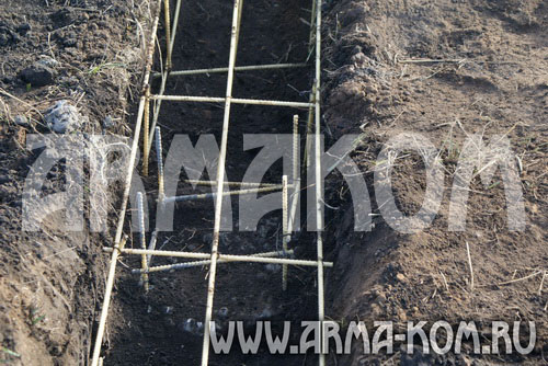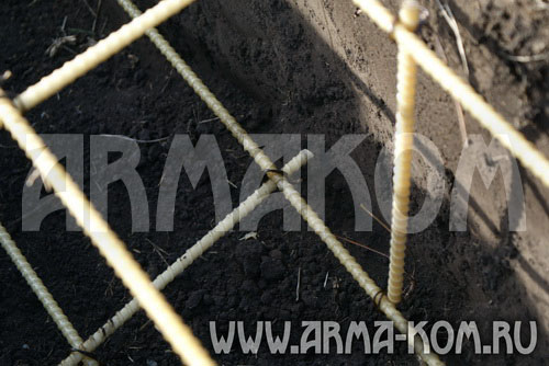 Армирование столбчатого фундамента и ростверка произведено композитной стеклопластиковой арматурой АСП-8 (длина прутка 12 м и 6 м). Увязка арматуры производилась вязальной проволокой диаметром 1.2 мм.