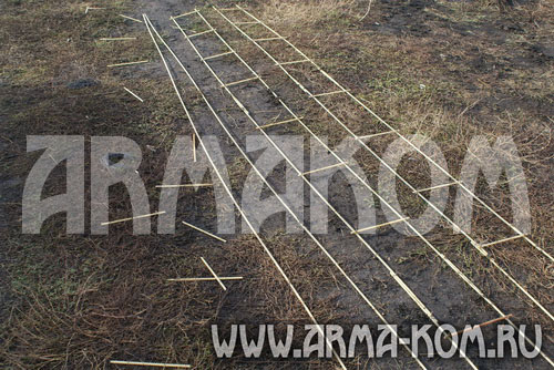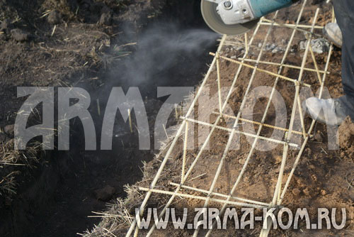Установка каркасов из стеклопластиковой арматуры в ленту.